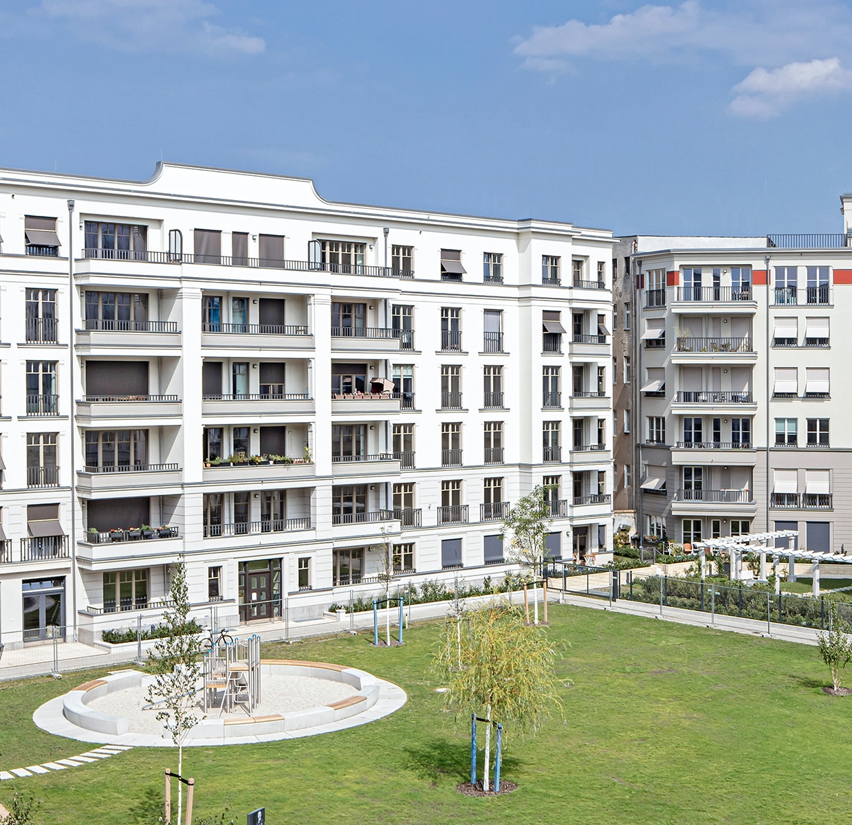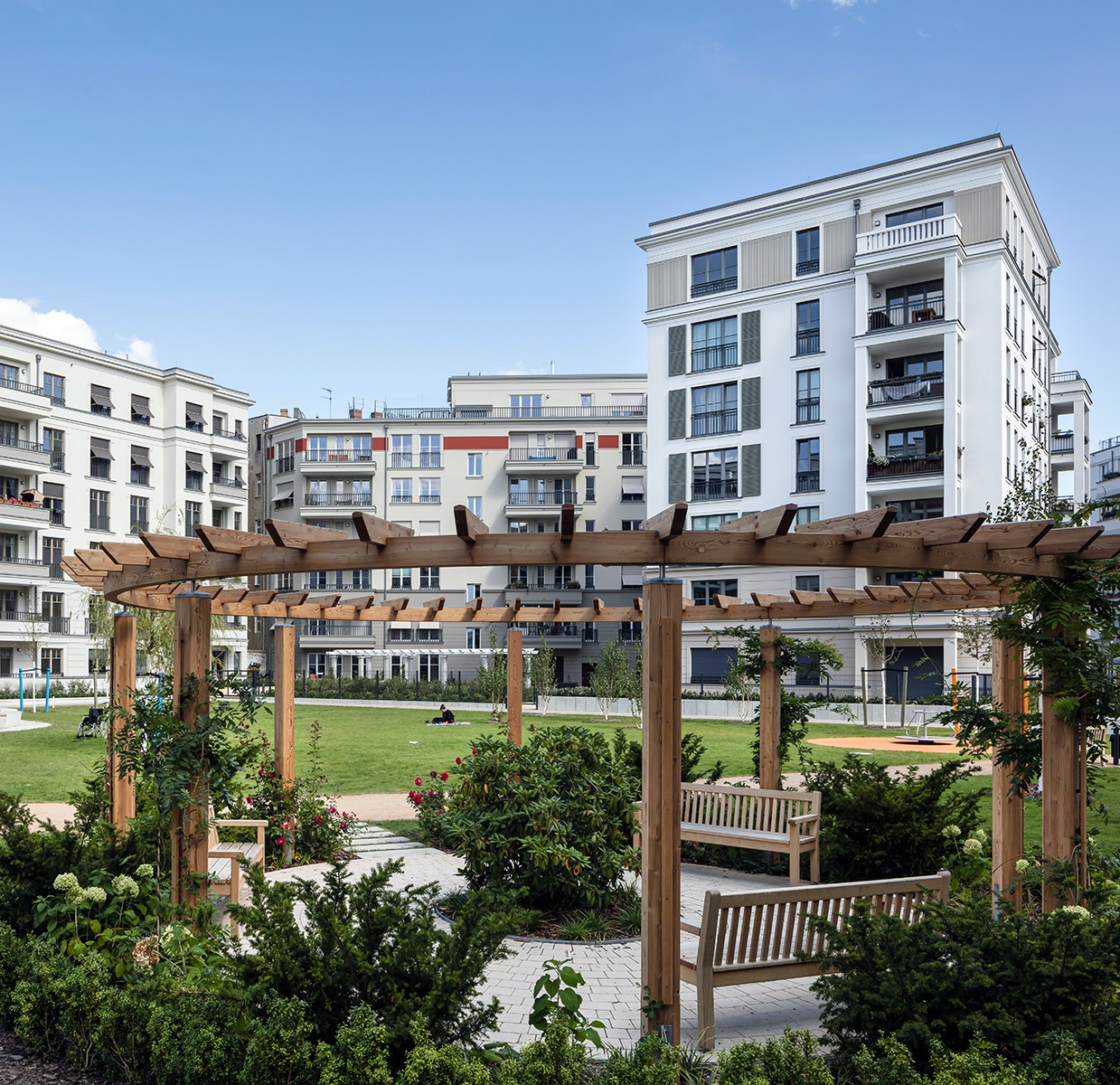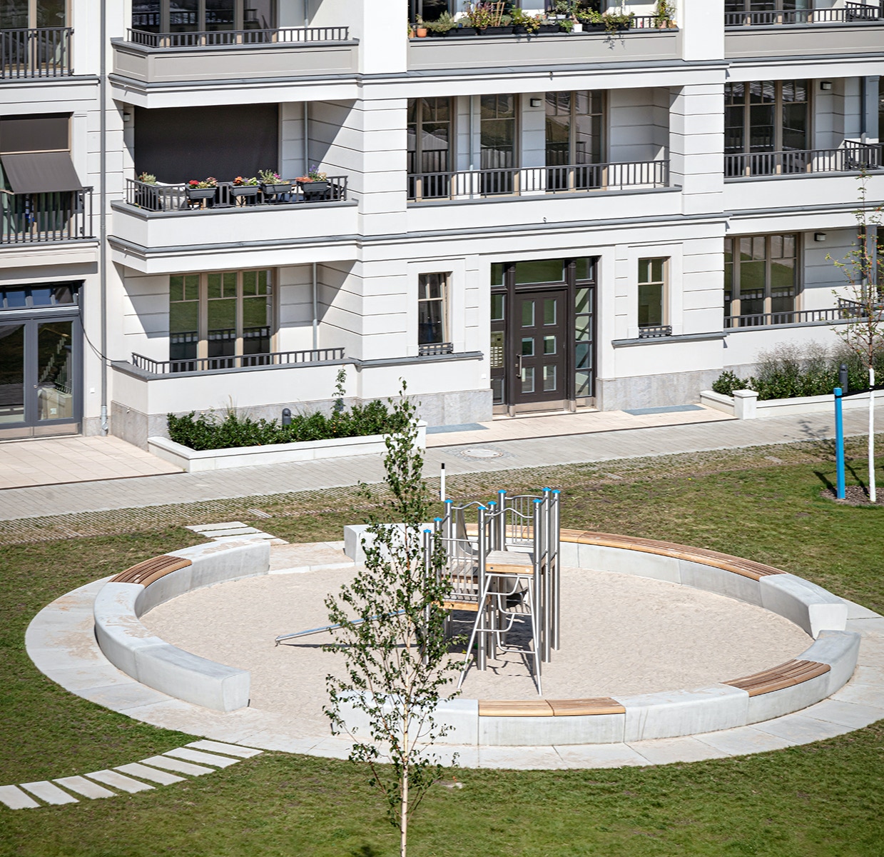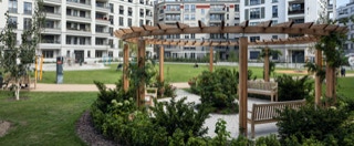 anlange als intensive Dachbegrünung auf einer Tiefgaragendecke eines Wohnungsneubaus