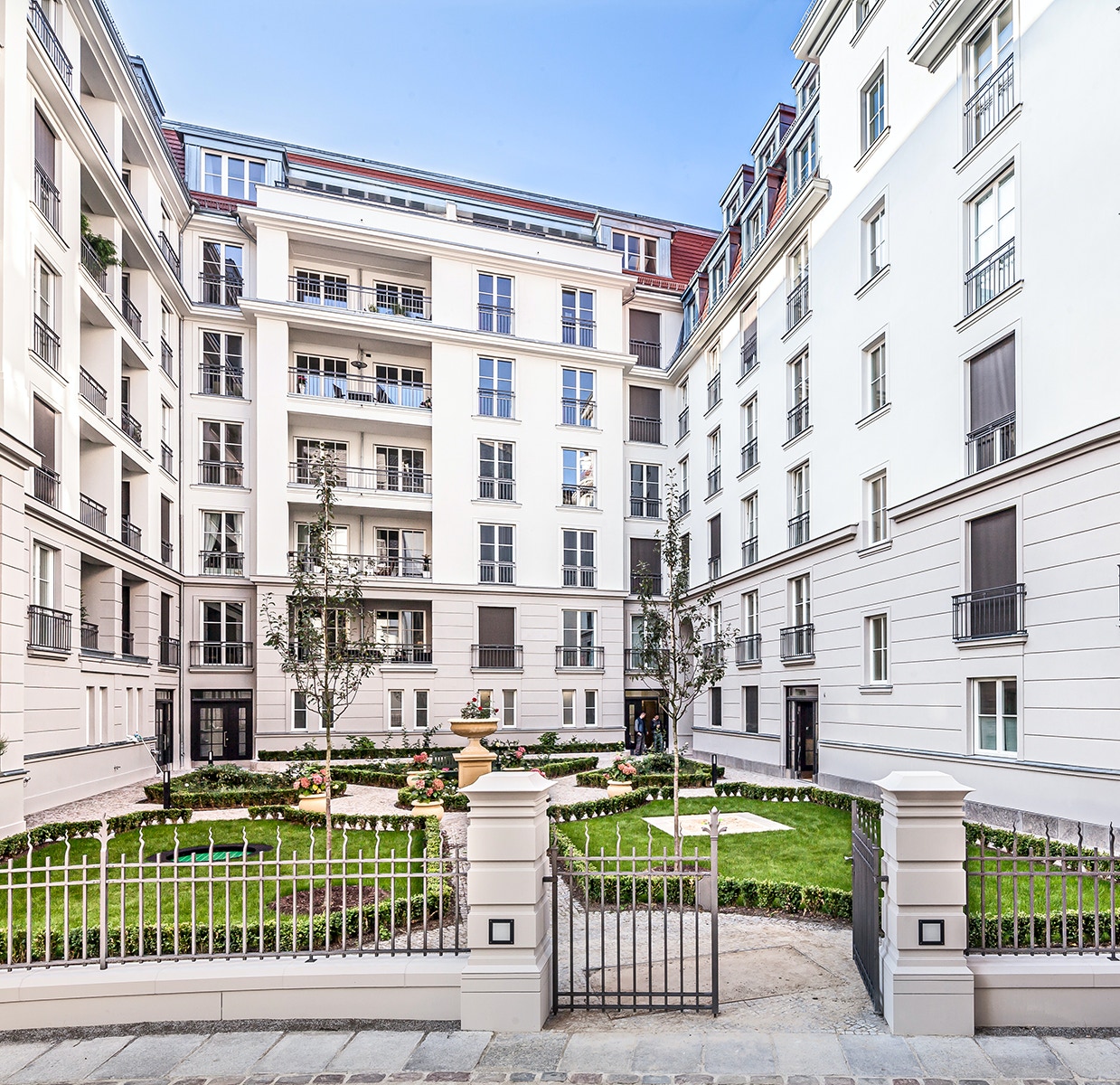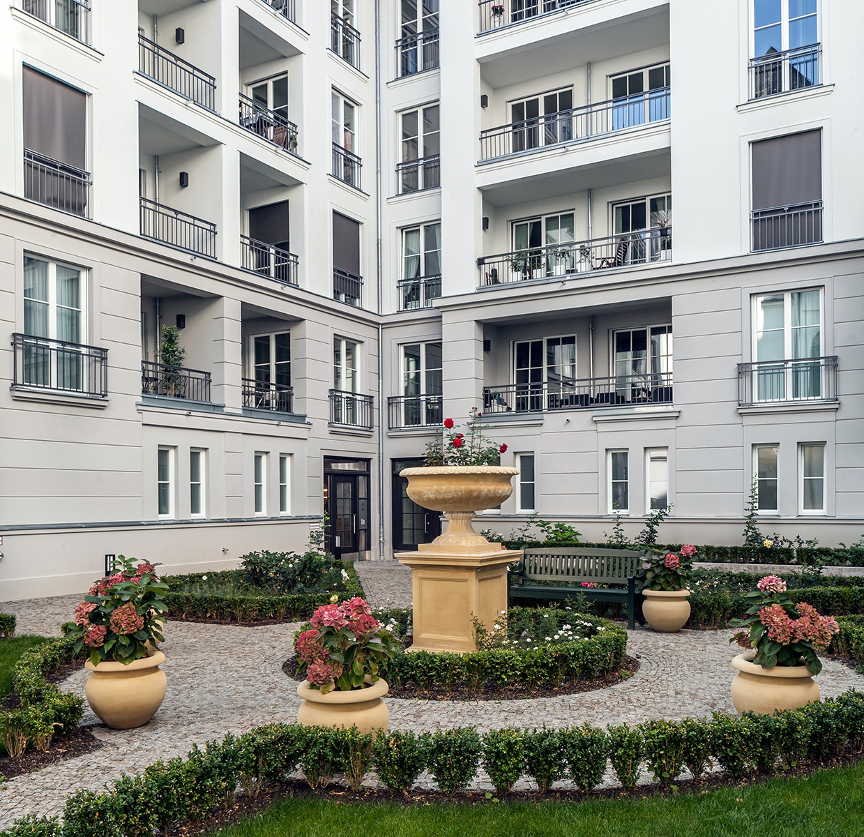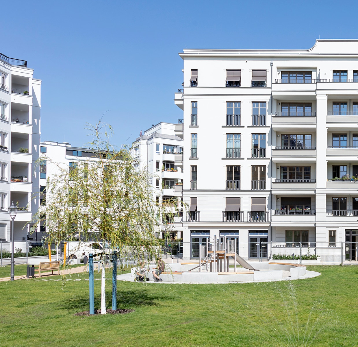 anlange als intensive Dachbegrünung auf einer Tiefgaragendecke eines Wohnungsneubaus