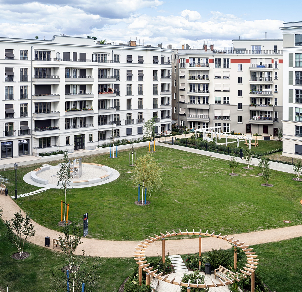 Gestaltung von fünf Wohnhöfen, einer Kita-Freifläche und einer Parkanlage